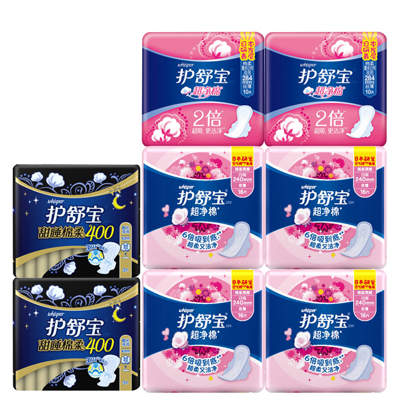 护舒宝棉面卫生巾棉柔丝薄日用4包+量多日夜2包+超长甜睡2包正品