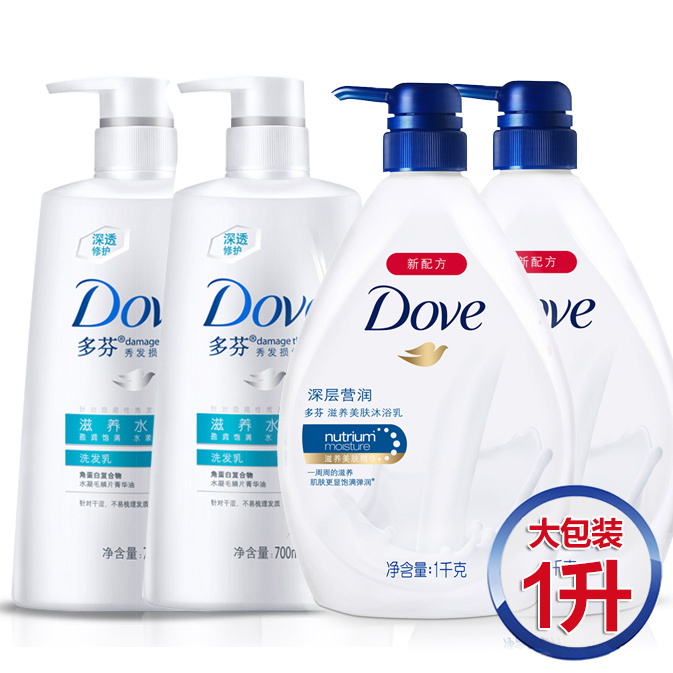 多芬洗发水露乳700mlX2滋养水润+沐浴露1000mlX2套装正品多省包邮