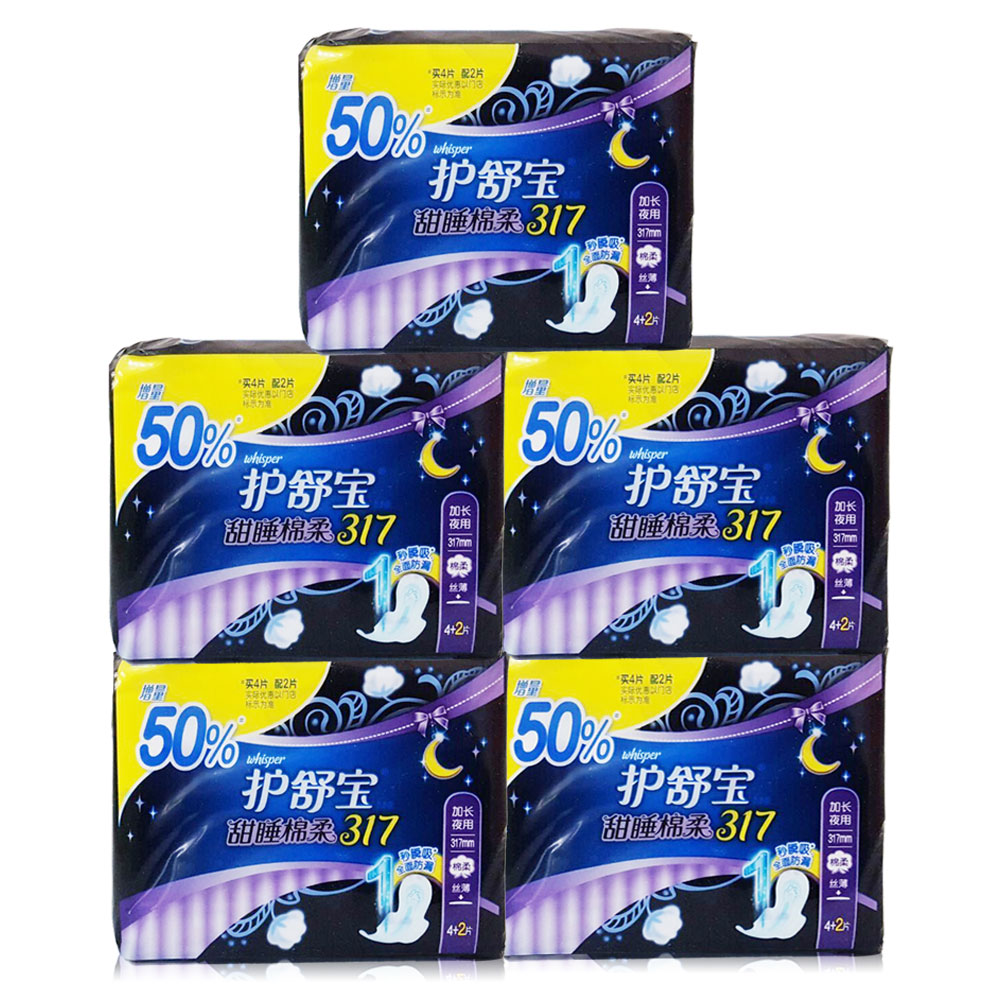 的热门产品护舒宝夜用卫生巾甜睡棉柔317mm棉柔丝薄4+2片x5包 正品多省包邮
