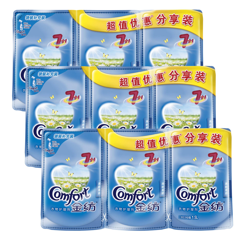 产地:中国 是否量贩装:是 香味:自然香型 品牌:金纺 净含量:2000mL以上 型号:金纺清新柔顺(500ml*3)x3套装 毛重:4.6kg 查看全文