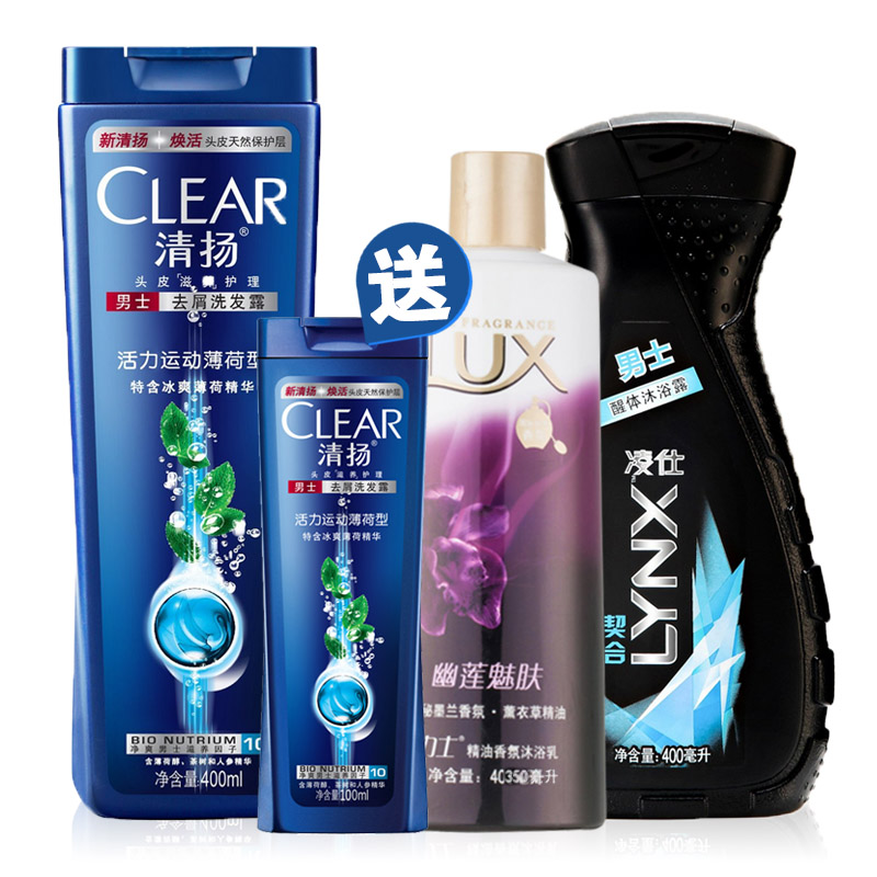清扬男士去屑洗发水400ml+凌仕沐浴露400ml送旅行装 多省包邮正品