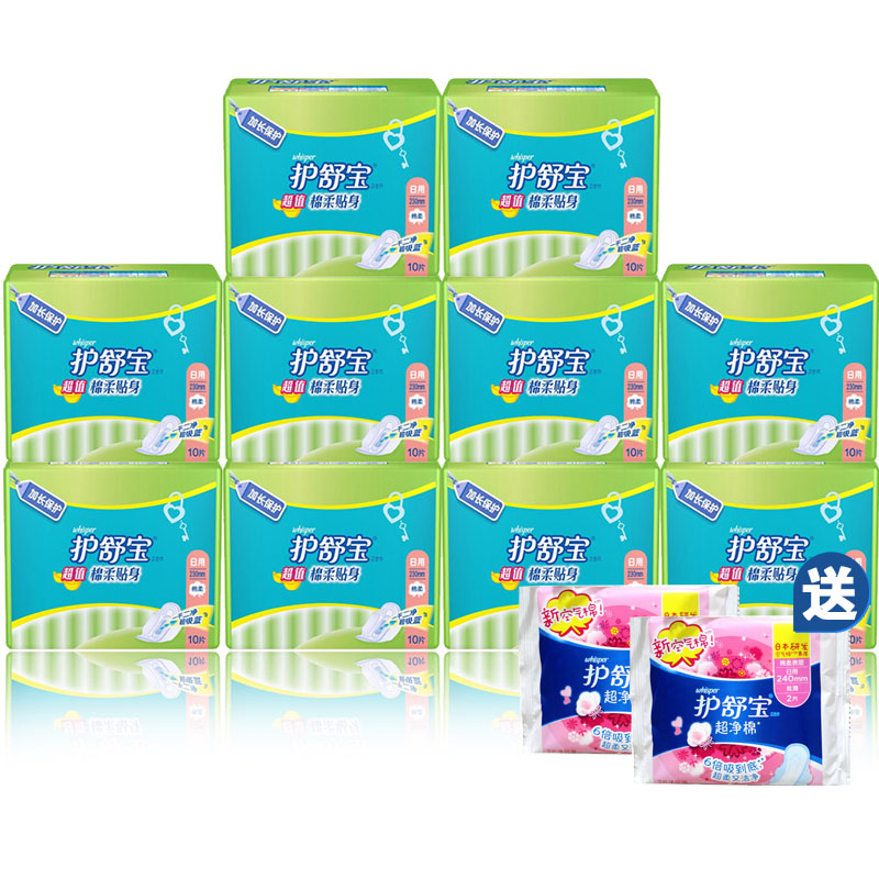 护舒宝棉面卫生巾超值棉柔贴身日用10包送4片 多省包邮 正品