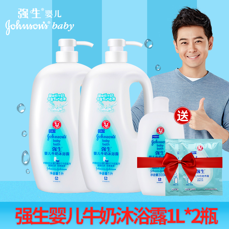 强生婴儿牛奶沐浴露1L家庭装新生儿童宝宝洗澡液沐浴乳买1送一