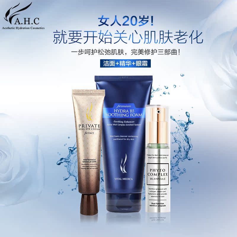 AHC持久补水保湿套装深层清洁锁住水分滋润营养3件套