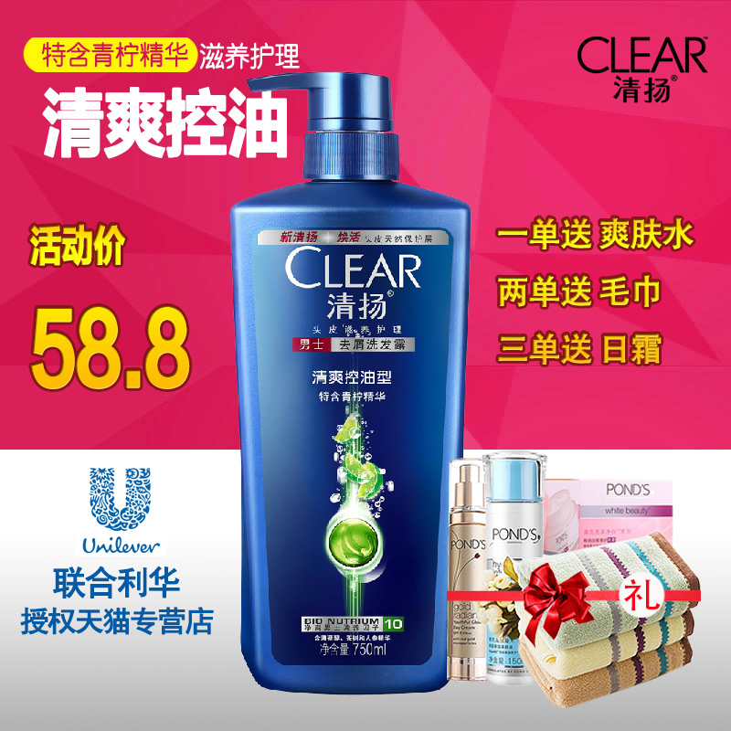 清扬 洗发水 男士去屑洗发露清爽控油型750ml去屑止痒 正品包邮