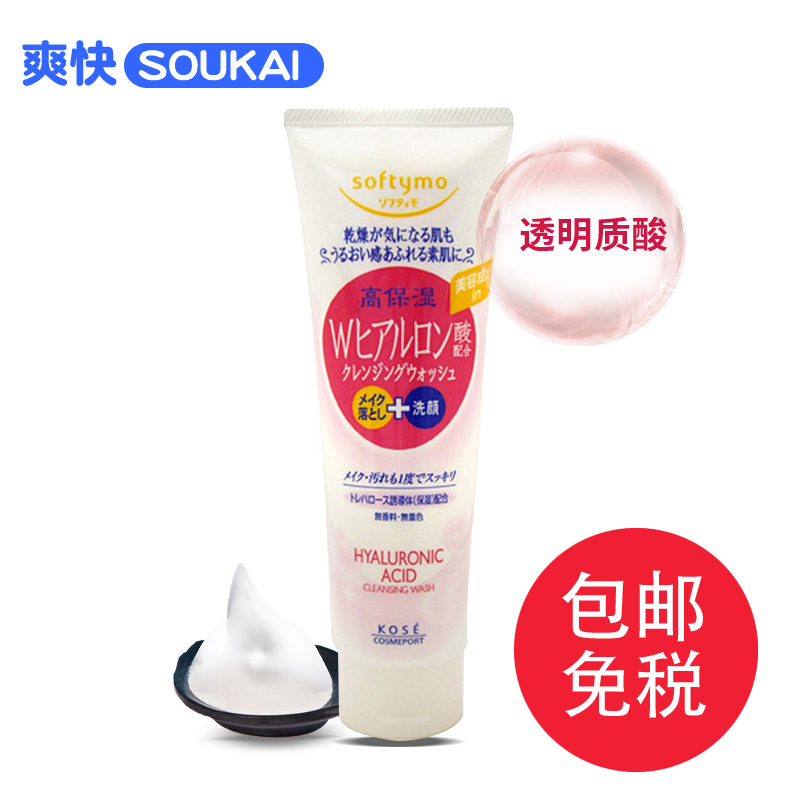 保税区发KOSE高丝Softymo透明质酸保湿卸妆洗面奶洁面乳190g