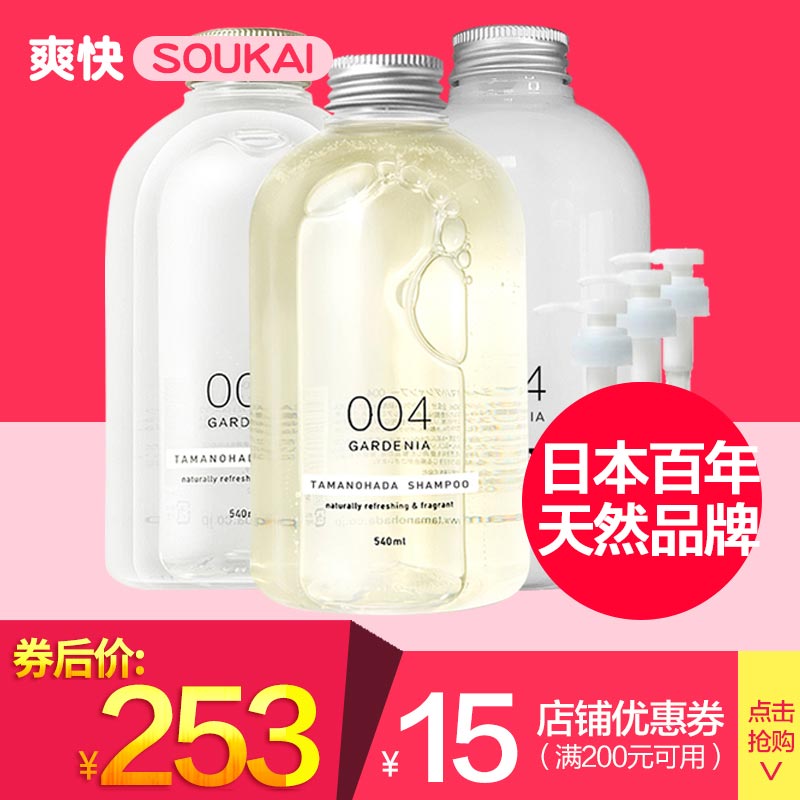 保税TAMANOHADA玉肌洗发水天然无硅油护发素沐浴露套装送压头