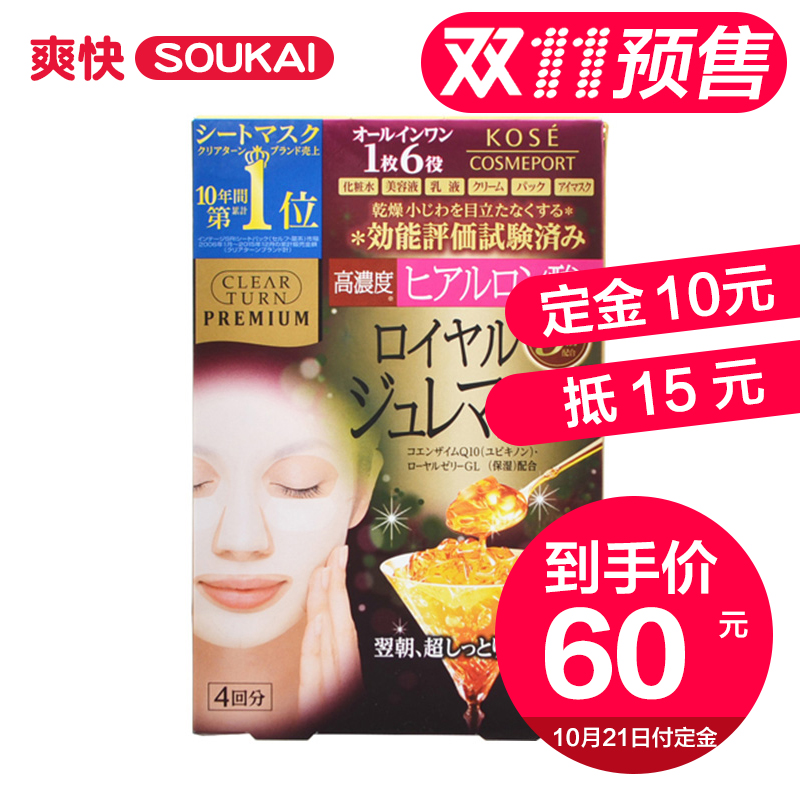 保税区发货Kose高丝clear turn高浓度胶原蛋白面膜4片装黄金果冻
