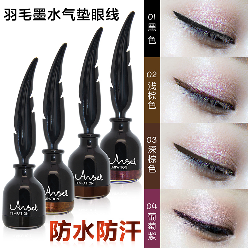 羽毛墨水气垫眼线液笔细持久防水不易晕染软头大眼定妆棕色初学者