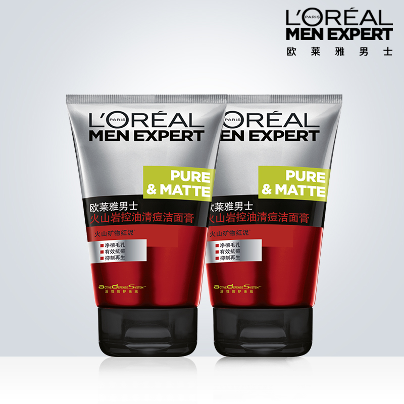 欧莱雅男士洗面奶男控油祛痘印淡化去痘痘黑头火山岩泥洁面乳套装