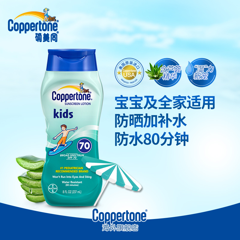 的热门产品正品coppertone水宝宝温和纯净防晒乳霜 户外全身海边男女spf50