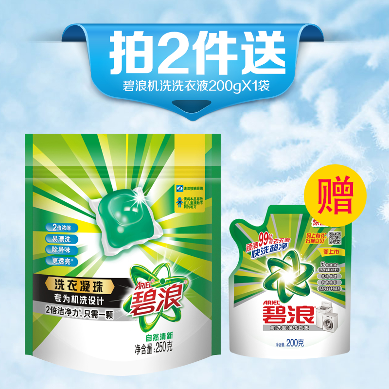 买2袋送200g碧浪新升级自然清新洗衣凝珠20颗袋装强效去顽渍500g