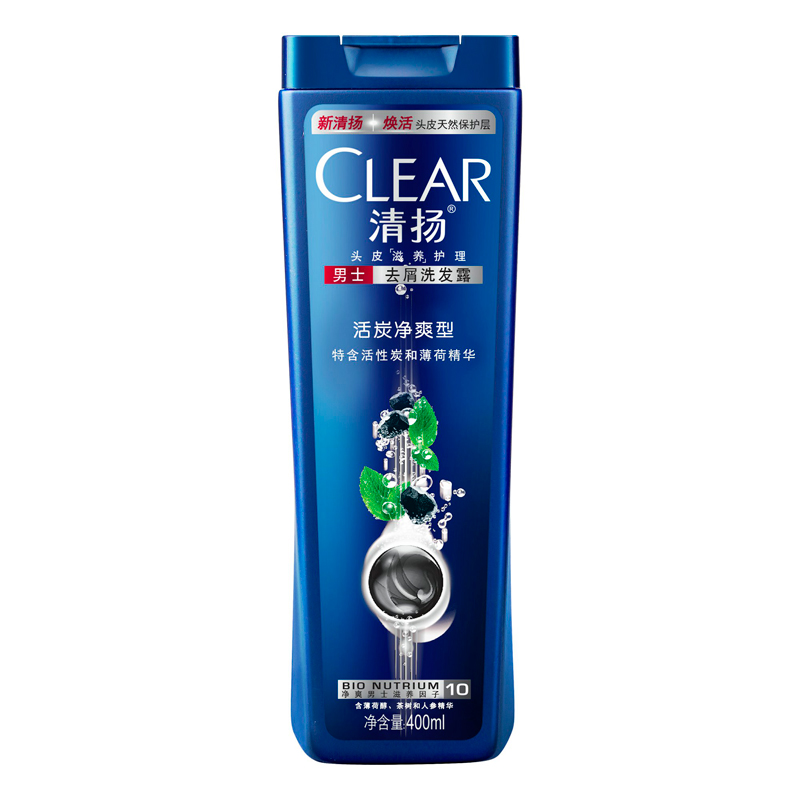 清扬洗发水男士去屑活炭净爽型洗发露400ml控油止痒深层洁净滋养