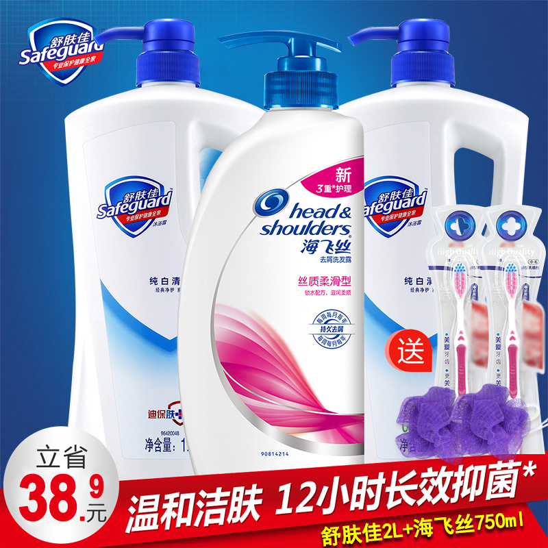 品牌:safeguard/舒肤佳 型号:舒肤佳2L+海飞丝750ml组合 是否量贩装:是 适合肤质:中性肤质 功能:清洁 净含量:其他 适用对象:通用 规格类型:套装 保质期:3年 产地:中国大陆 查看全文