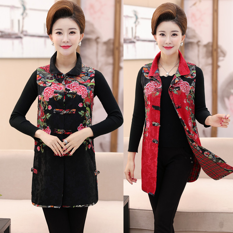 的热门产品中老年女装秋冬装马甲妈妈装唐装加绒马夹坎肩外套中长款背心棉衣