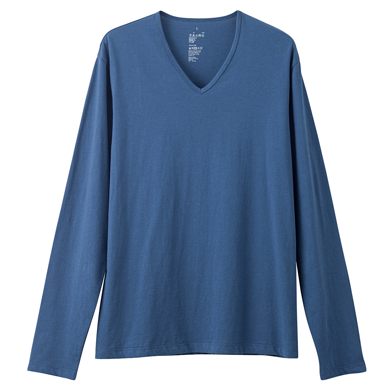 无印良品 MUJI 男式 棉天竺V领长袖T恤