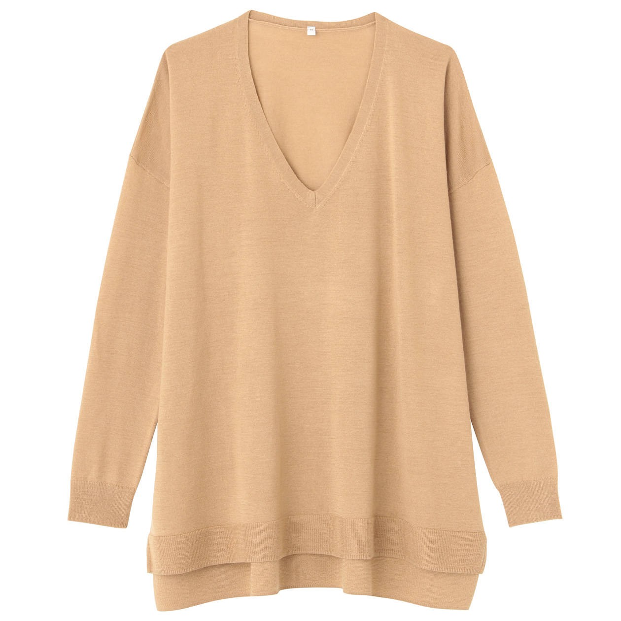 无印良品MUJI 女式 羊毛桑蚕丝可水洗长袖束腰长上衣