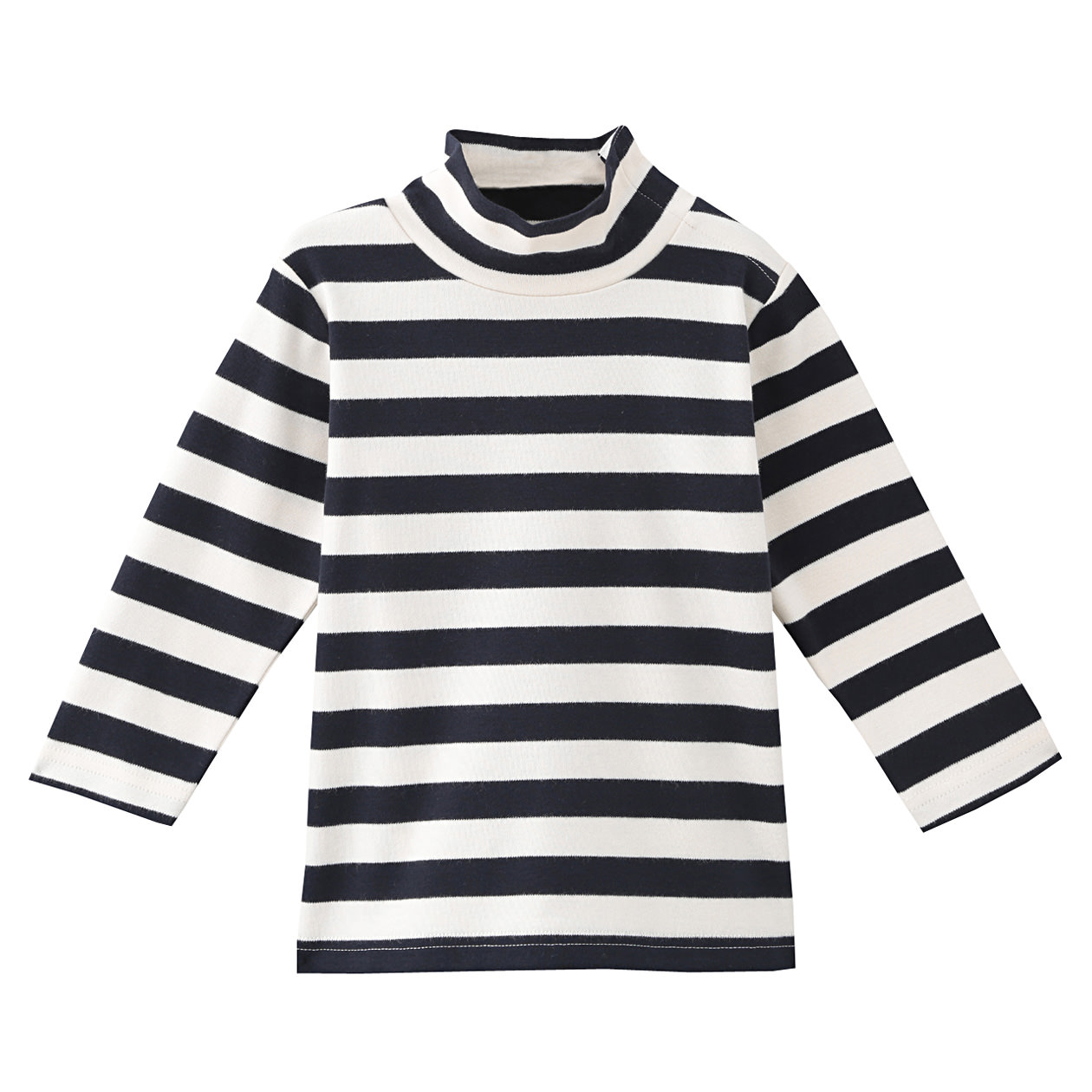 无印良品MUJI 婴儿 起毛双罗纹条纹高领长袖T恤