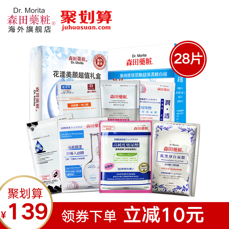 【聚】台湾森田药妆玻尿酸补水保湿焕白面膜组28片收缩毛孔提亮