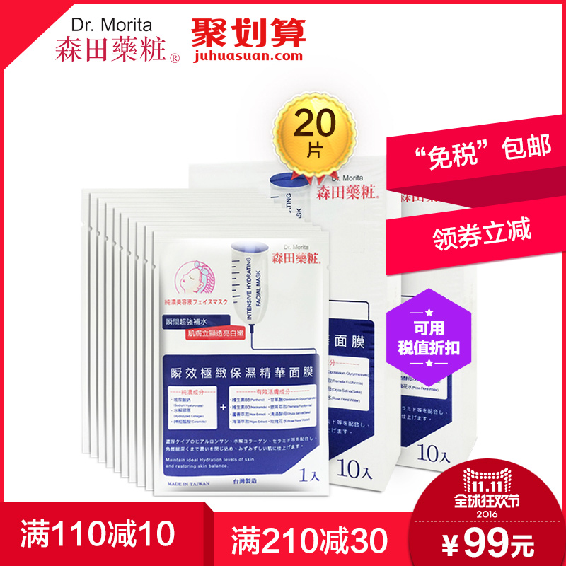 台湾森田药妆瞬效极致保湿精华面膜20片 深层补水长效保湿