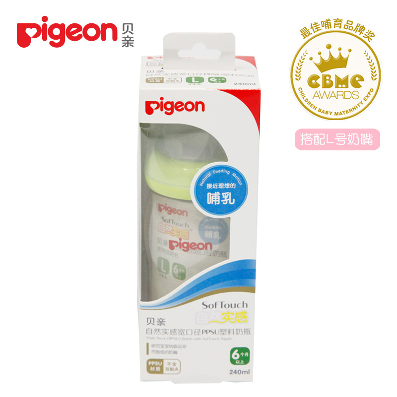新品 贝亲pigeon自然实感宽口径PPSU奶瓶240ml 配L奶嘴 AA93