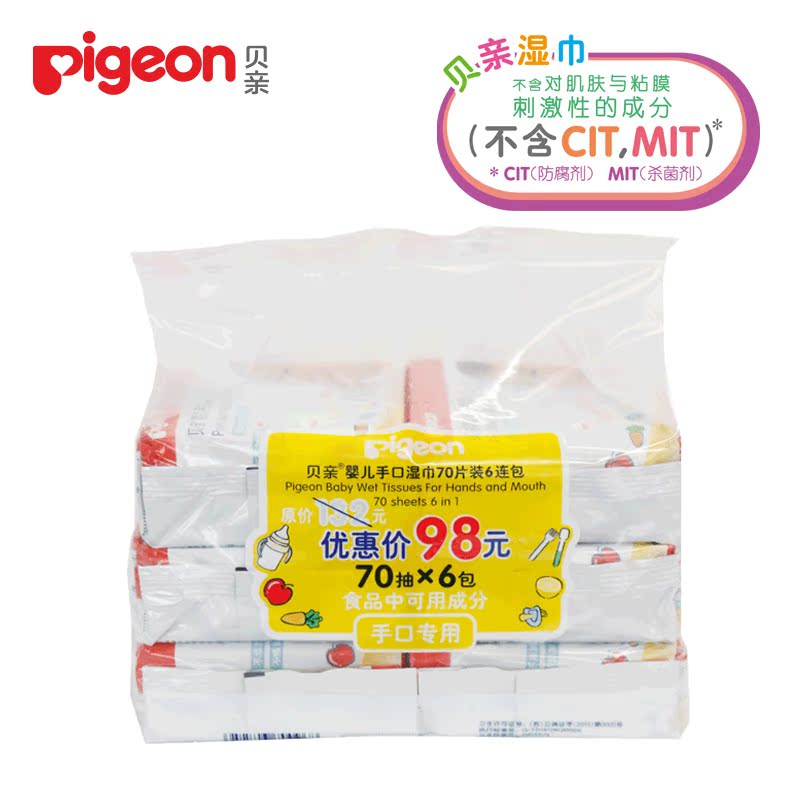 pigeon贝亲婴儿手口湿巾70片装6包促销 PL192
