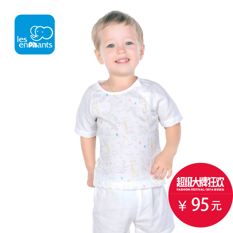 丽婴房婴儿衣服儿童纯棉纱布内衣套装短袖斜开扣内衣套装2016夏新