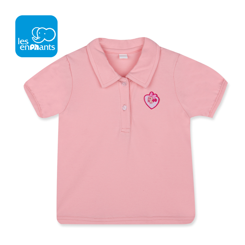 丽婴房童装 迪士尼女童纯色polo衫 休闲简约短袖T恤 2016夏新