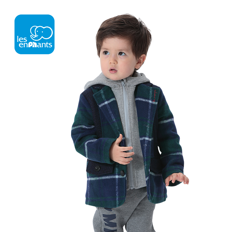 丽婴房童装 男童气质韩版格子西装外套 时尚韩风保暖外套 2016春