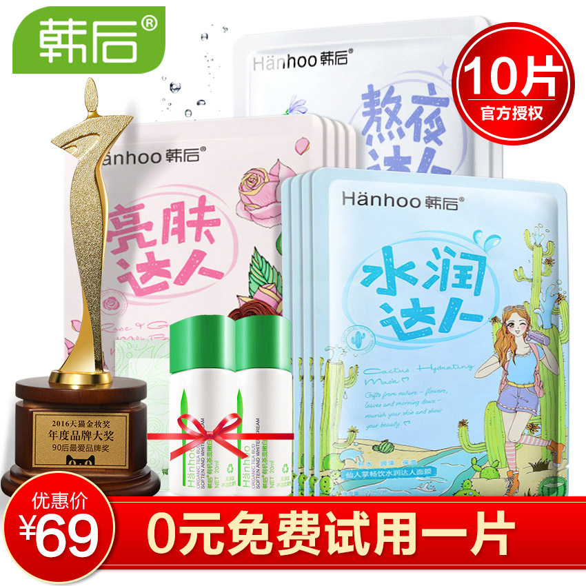 韩后面膜正品女补水达人保湿蚕丝面膜贴10片春夏修护收缩毛孔控油