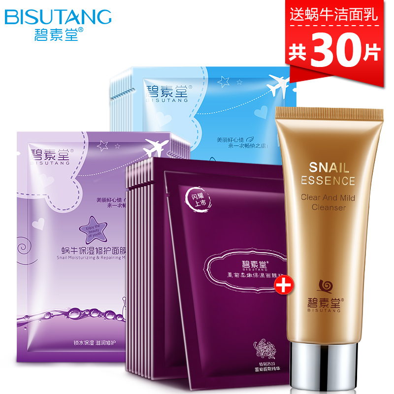 碧素堂蜗牛牛奶墨菊保湿30片面膜贴组合 补水保湿非美白护肤水润