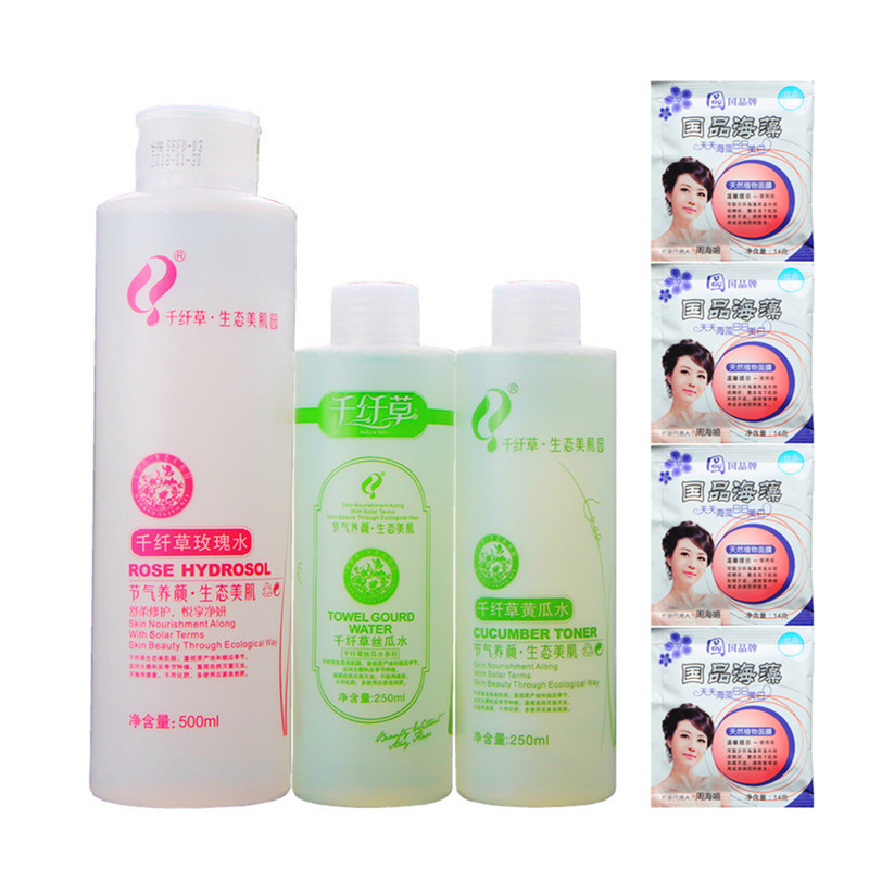 千纤草丝瓜水250ml黄瓜水250ml玫瑰水500ml 送纸膜40粒泡瓶喷壶