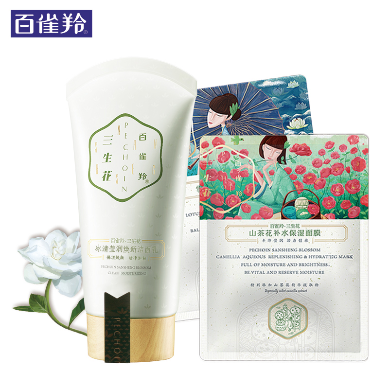 百雀羚洗面奶 三生花冰清莹润焕新洁面乳90g深层清洁清爽保湿女