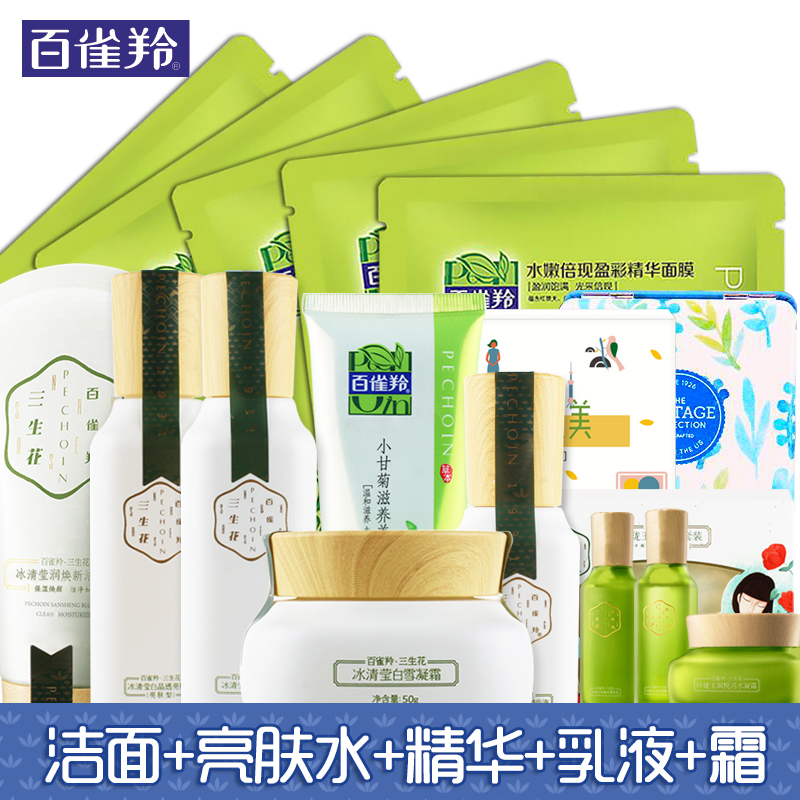 的热门产品百雀羚套装女三生花冰清莹白护肤品保湿补水均匀提亮肤色淡化色斑