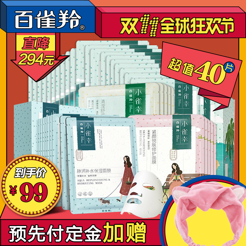 【11预售】百雀羚小雀幸缤纷海藻蚕丝面膜贴套装40片