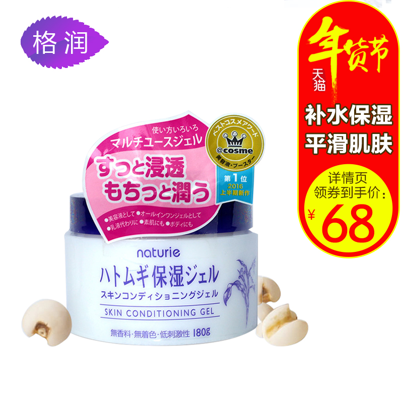 naturie薏仁水面霜保湿女补水美白滋润啫喱 平滑肌肤 嫩肤 180g