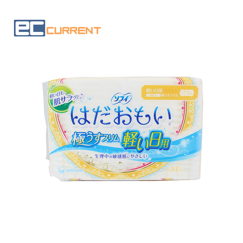 日本原装苏菲SOFY温柔敏感肌量少日用无护翼极薄卫生巾175mm*34片