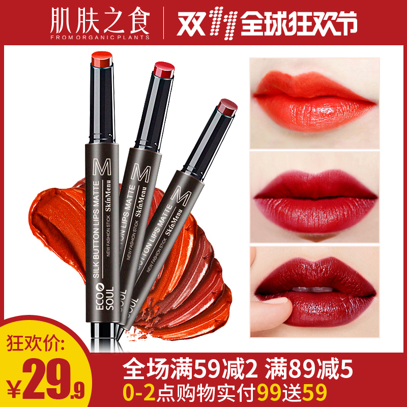 肌肤之食按压咬唇妆口红持久保湿滋润不脱色豆沙姨妈色哑光唇膏
