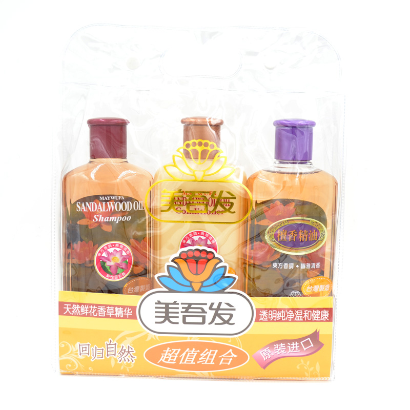 台湾进口 美吾发檀香精油无硅洗发水护发沐浴套装 500ml*3