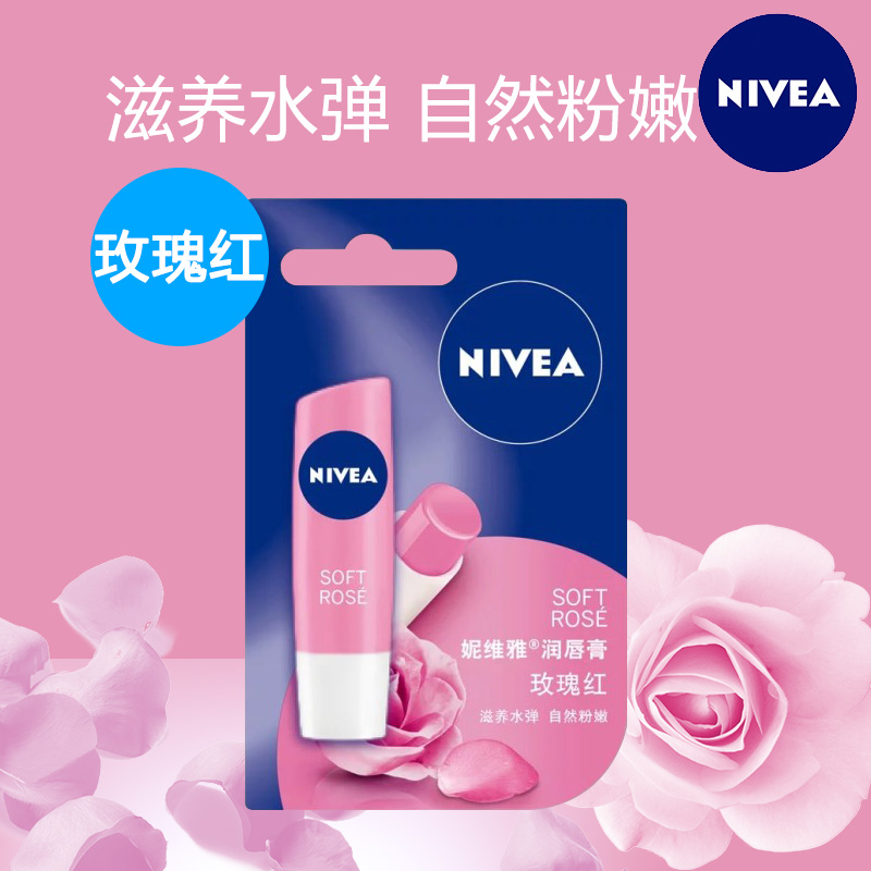 妮维雅男女润唇膏(玫瑰红)保湿滋润补水护唇膏防干裂无色滋润