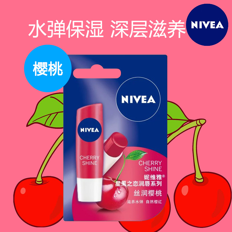 妮维雅润唇膏丝润樱桃保湿滋润补水淡化唇纹持久防干裂男女护唇膏