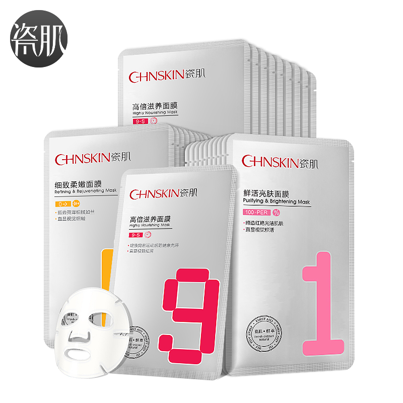 瓷肌亮肤细致滋养面膜30片 提亮肤色补水保湿收缩毛孔面膜贴正品