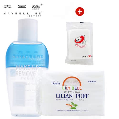 包邮美宝莲卸妆液70ml+丽丽贝尔222片卸妆棉眼唇卸妆水油套装
