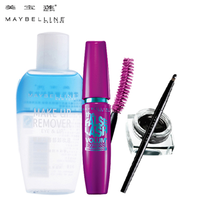 包邮美宝莲眼唇部卸妆油+密扇睫毛膏+持久魅影眼线膏3件彩妆套装