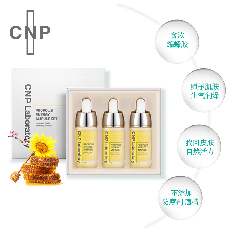 CNP韩国进口蜂胶能量导入精华套装美白保湿光泽弹力3瓶*15ml