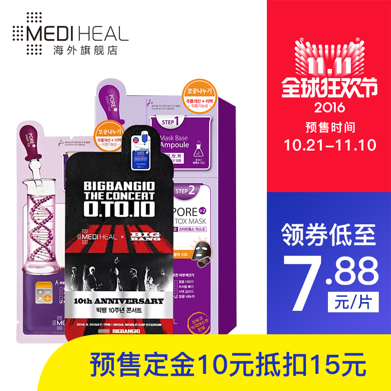 MEDIHEAL美迪惠尔可莱丝毛孔紧致两步骤面膜bigbang珍藏水库套装