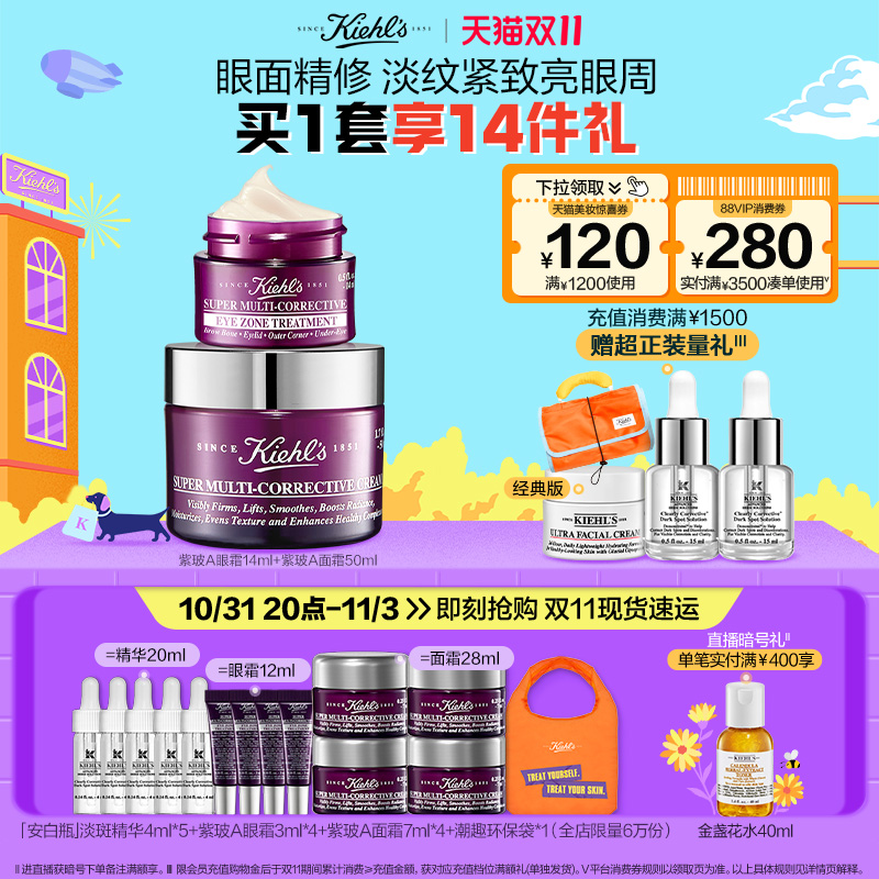 【双11抢购】科颜氏紫玻A抗初老护肤品套装 面霜眼霜淡纹正品