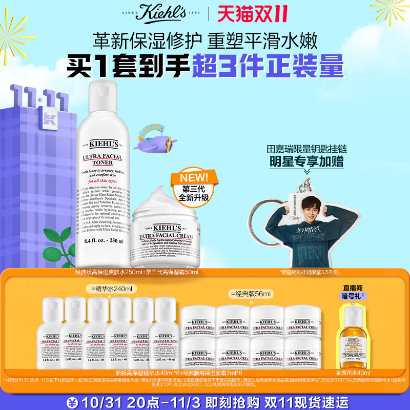 【双11抢购】kiehls科颜氏高保湿水乳套装补水面霜爽肤水洁面