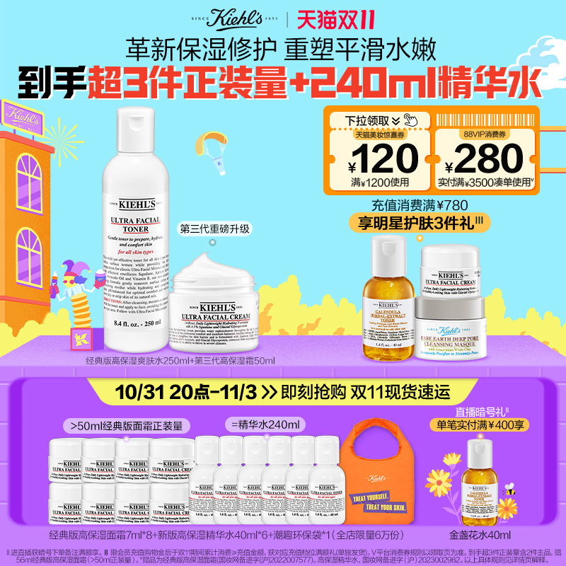 【双11抢购】kiehls科颜氏高保湿精华爽肤水补水保湿润肤水