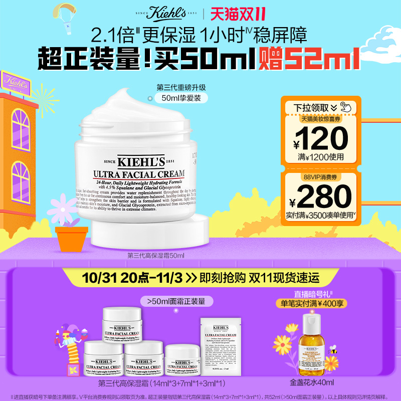 [双11抢购]科颜氏第三代高保湿面霜保湿补水滋润修护舒缓乳液护肤